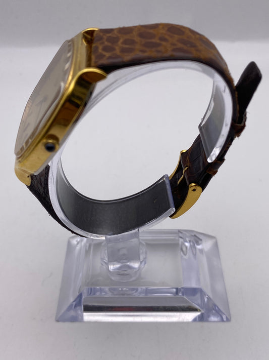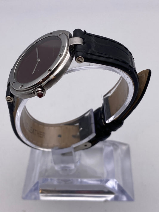 Vintage Cartier Santos Vendome Burgundy Dial Quartz Dress Watch With Travel Pouch