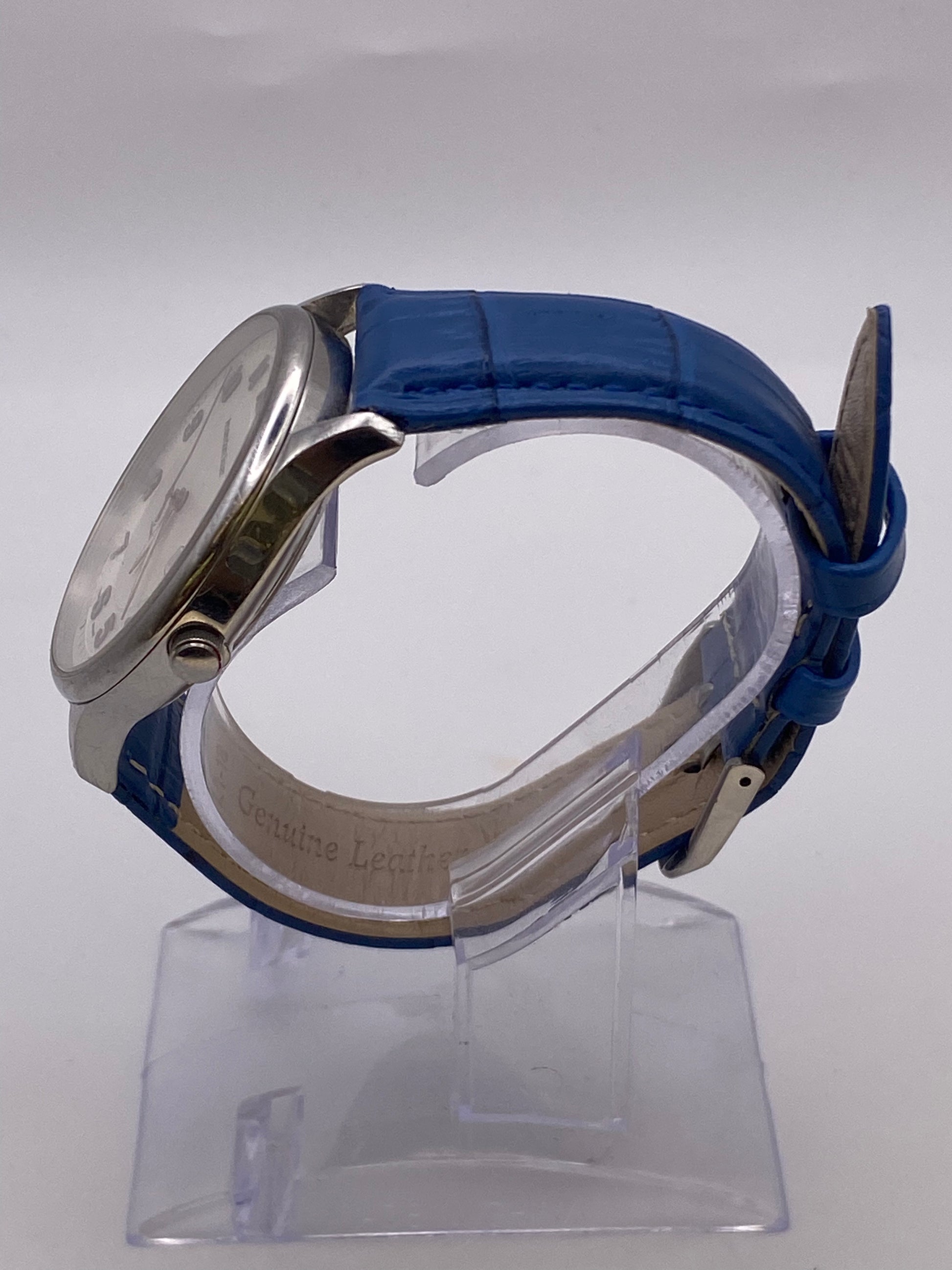Now available is this Amsterdam Sauer stainless steel dress watch. This watch has a silver dial with large unusual hour markers and hands. It has an automatic mechanical movement that has been time-tested and is running well. This piece also has a date function at the three o'clock position.