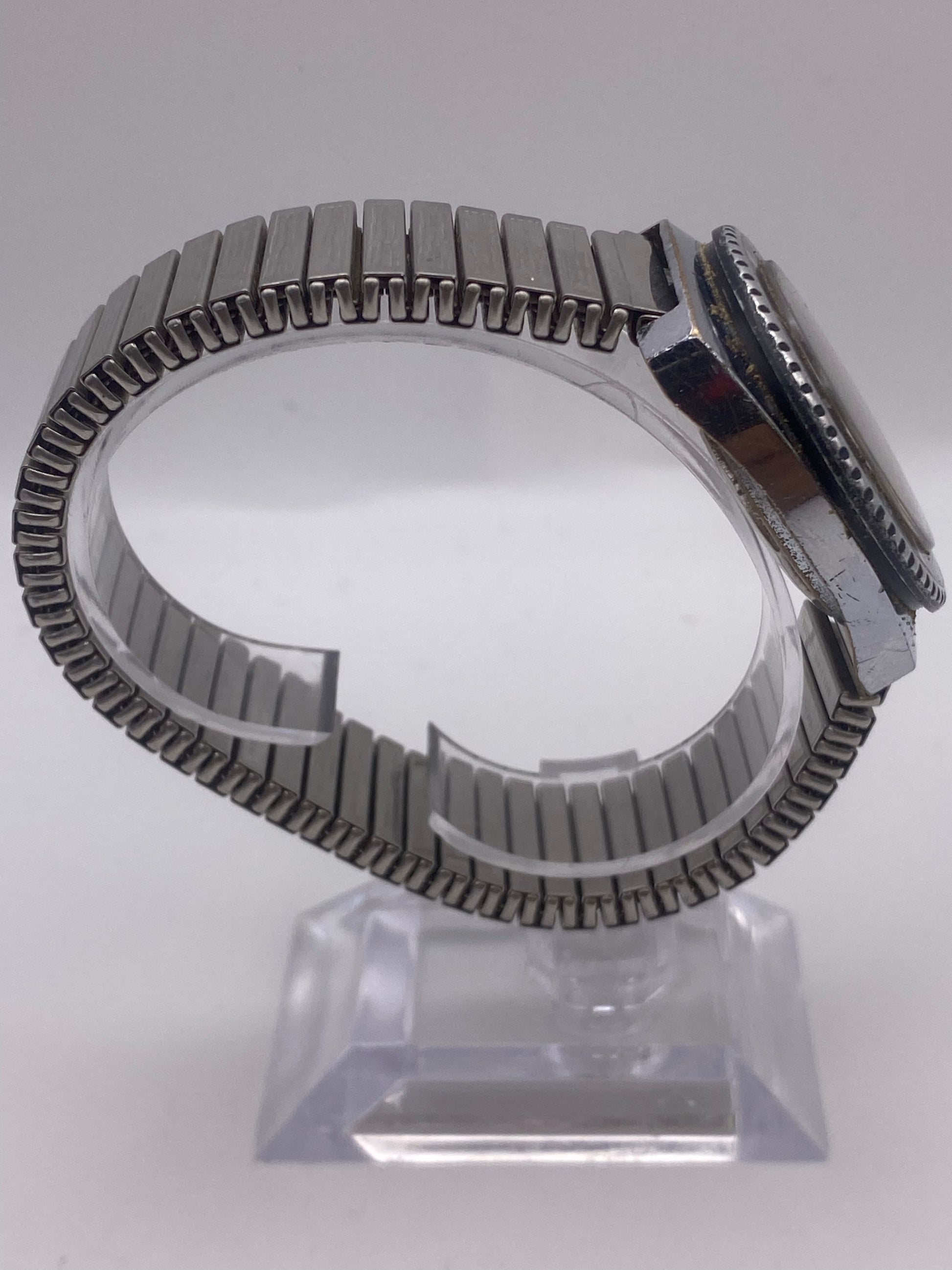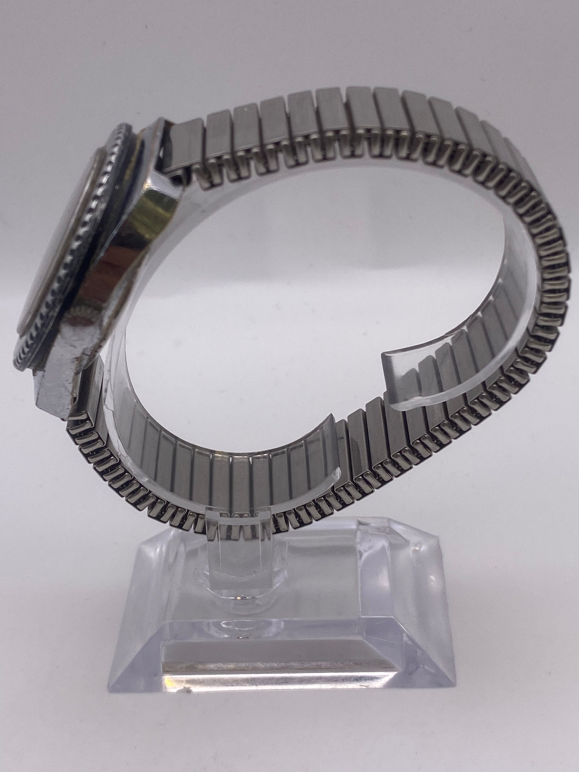 Now available is this stunning vintage Anker manual wind mechanical skin diver watch. This watch has a striking black dial with silver tone hands and large hour indexes. It has a manual wind mechanical movement that has been time-tested and is running well. As you can see, the case and glass have some slight marks, but nothing that compromises the watch's wearability or structure. This watch is not water-resistant; keep it away from water. This watch is mechanical so will not be as accurate as a modern day quartz watch or smartphone.