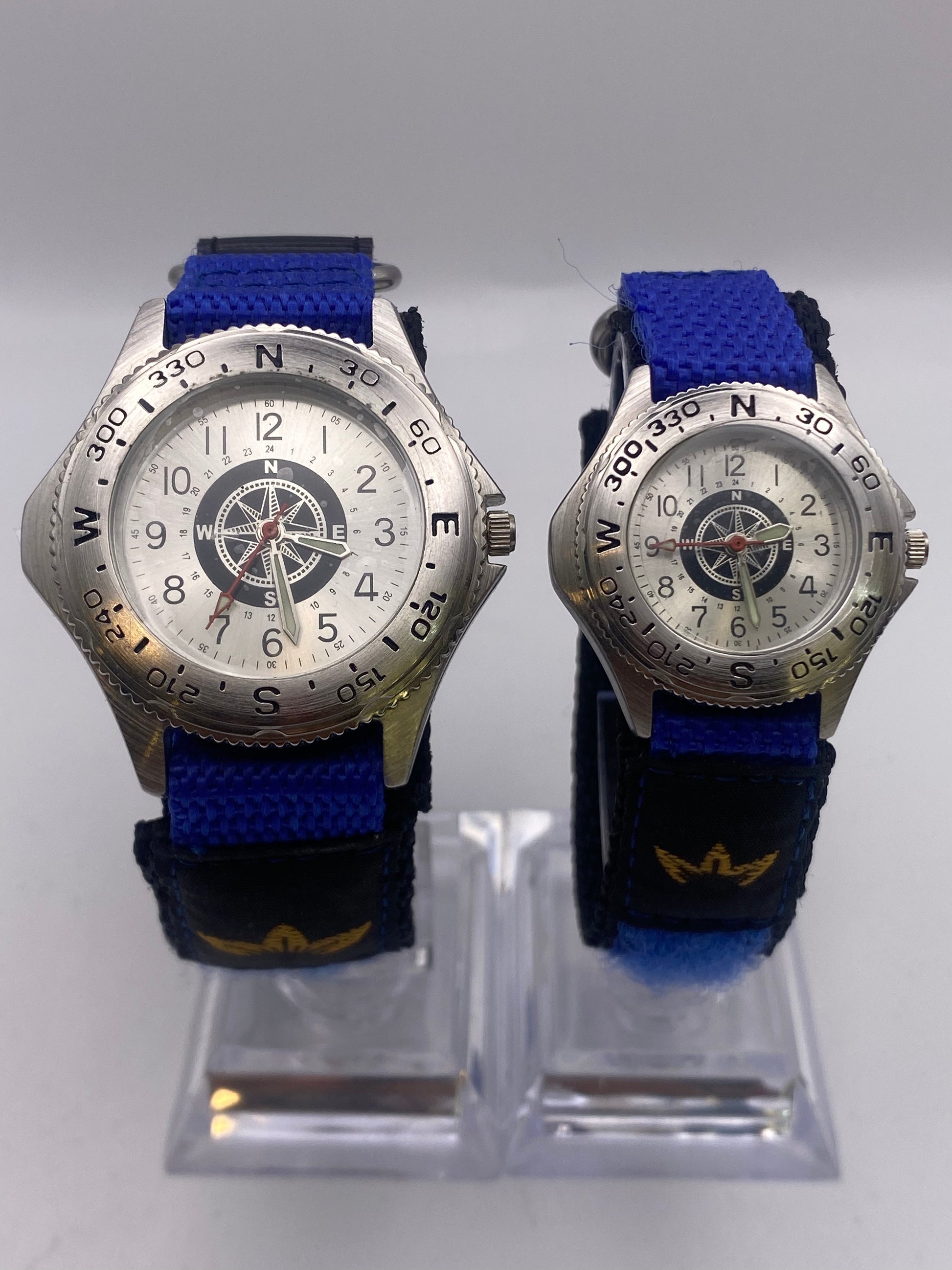 Now available is this his and hers set of Marlboro watches. These watches feature a silver dial with silver hands and black indexes. Both have quartz movements that have been time-tested and are running exceptionally well. As you can see, the cases and glasses have some slight marks, but nothing that compromises the watch's wearability or structure. These watches are not sold as water-resistant; keep them away from water.