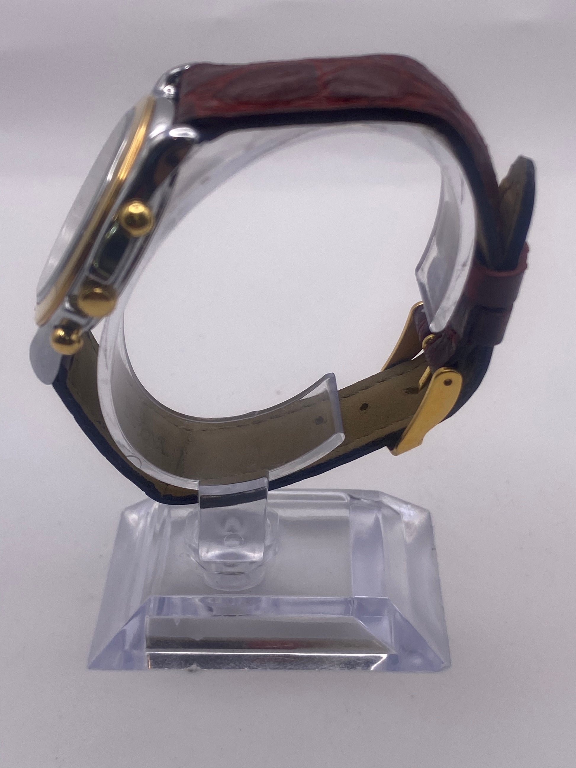 Now available is this stunning vintage Bulova quartz chronograph dress watch. This watch features an exceptional silver dial with gold tone indexes and hands. It has a quartz movement that has been time-tested and is running exceptionally well. As you can see, the case and glass have some slight marks, but nothing that compromises the watch's wearability or structure. This watch is not sold as water-resistant; keep it away from water.