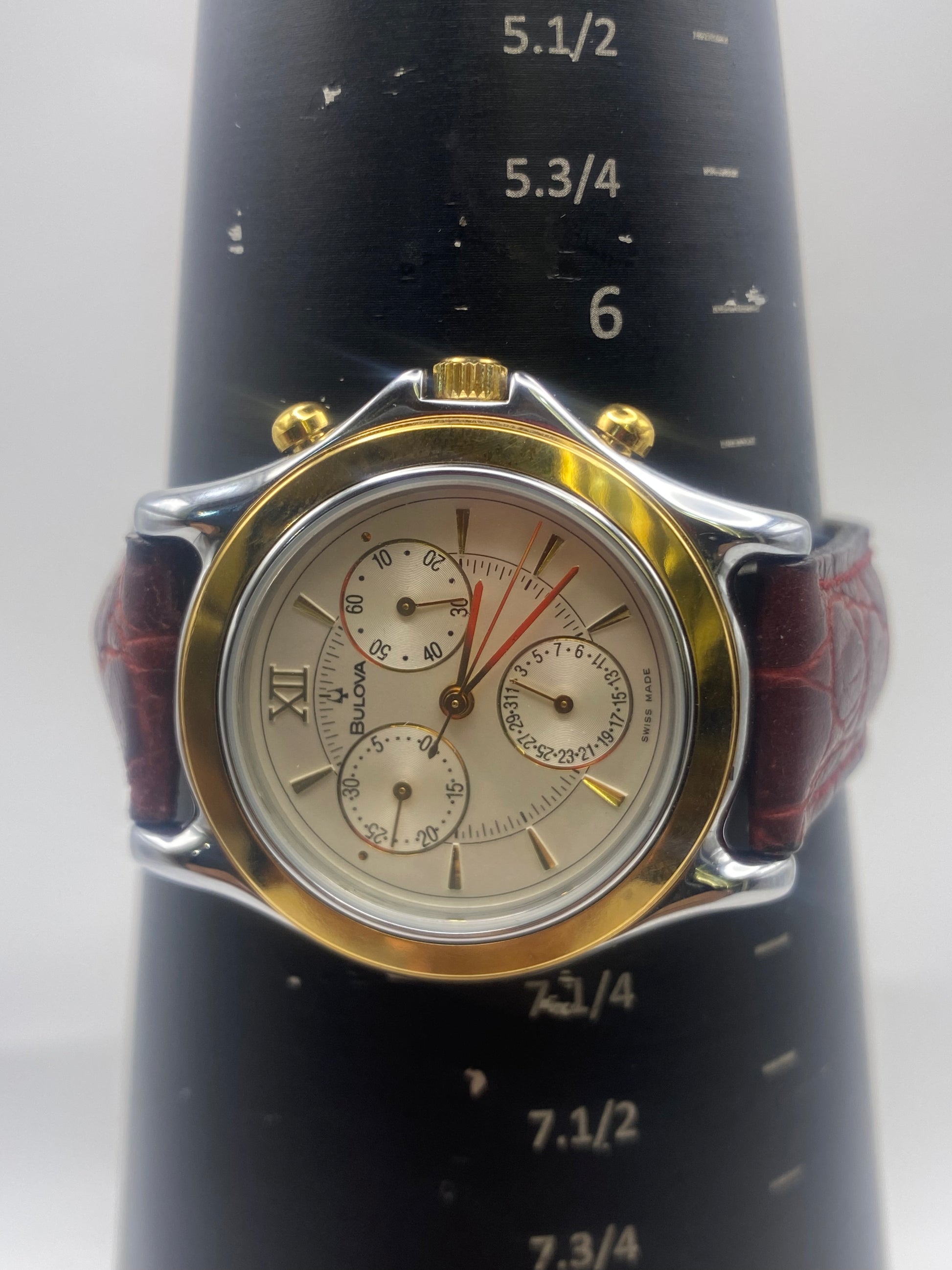 Vintage Bulova Silver Dial Quartz Chronograph Dress Watch With Box & Papers