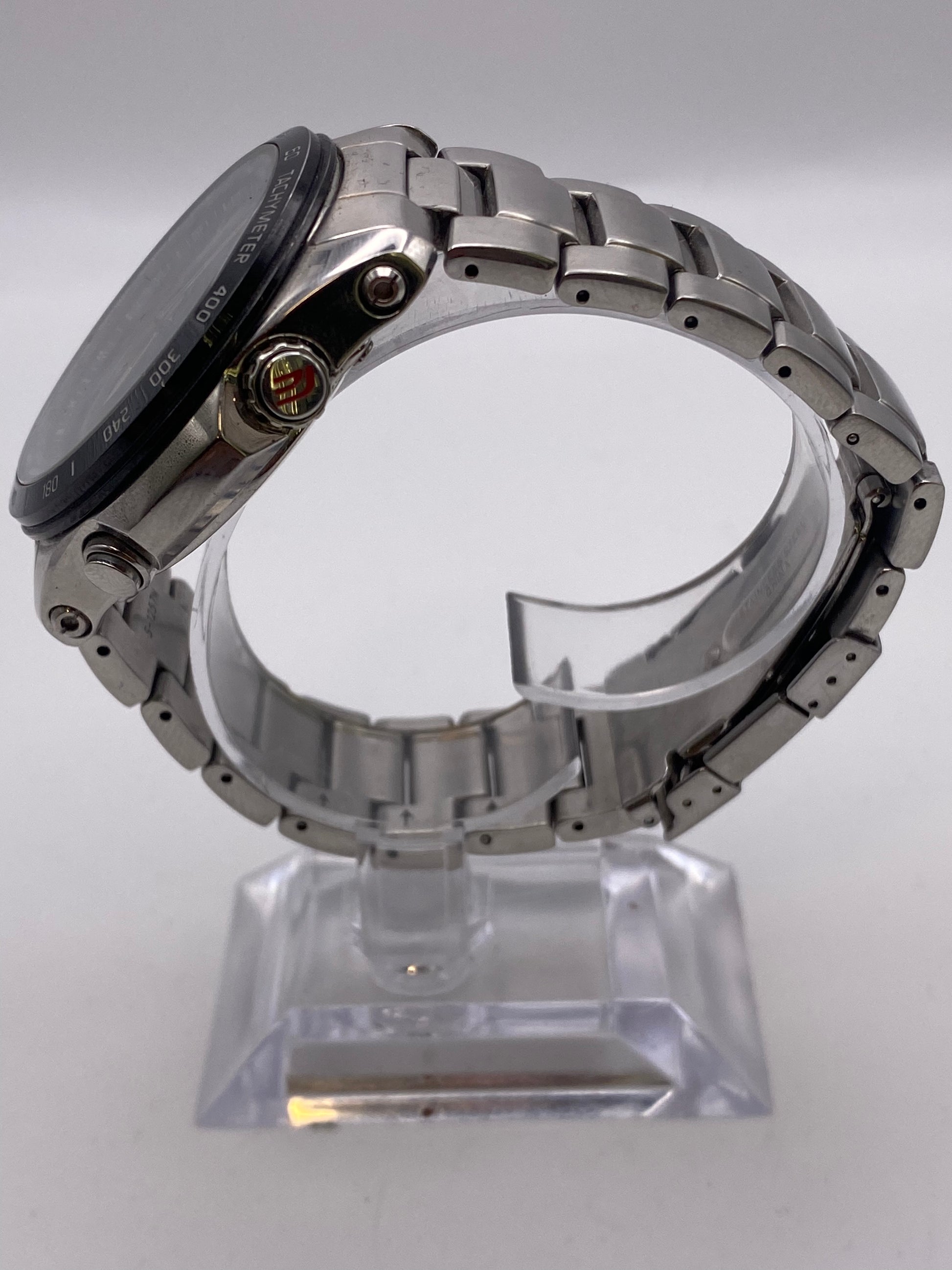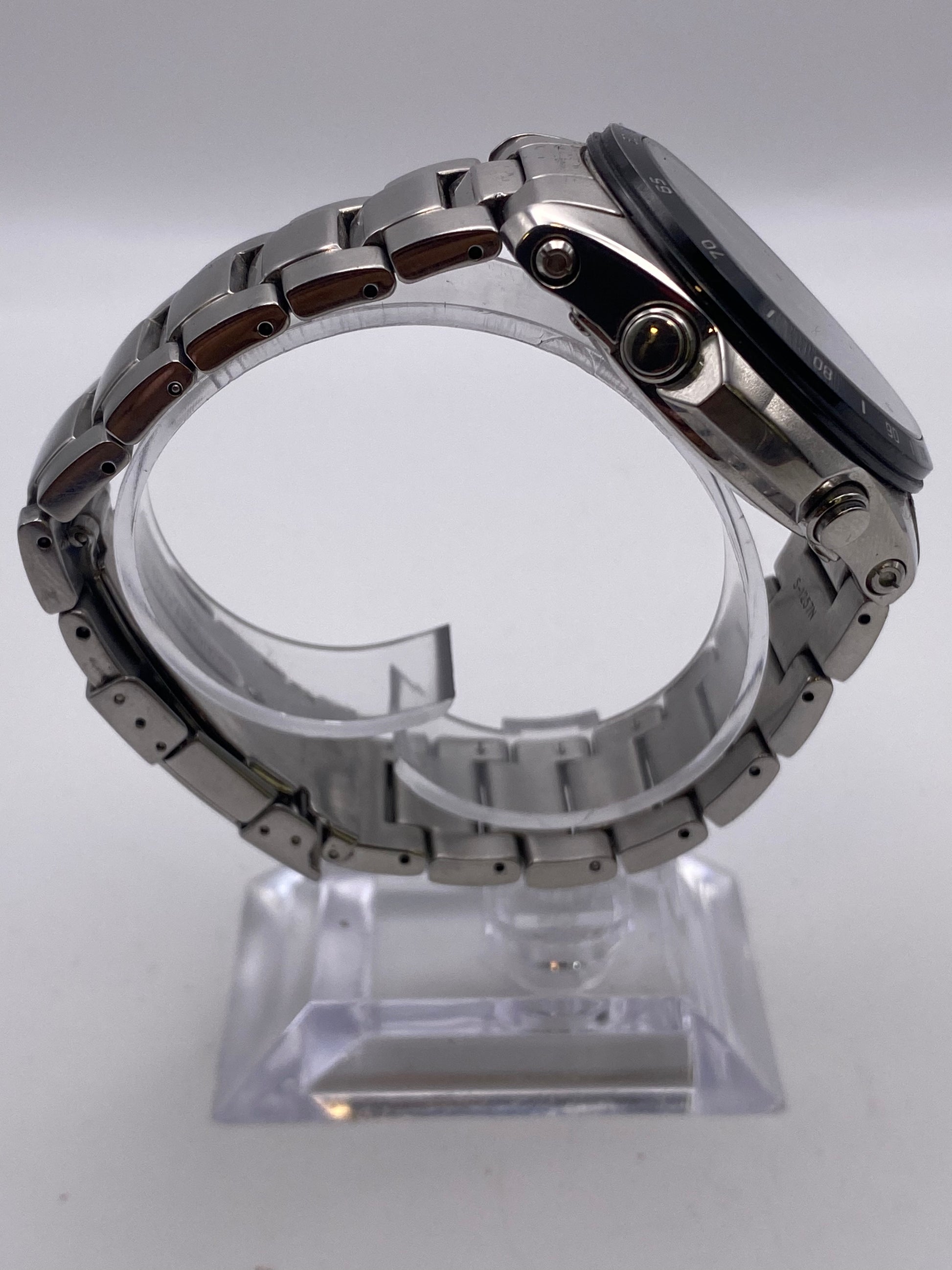 Now available is this Casio Edifice stainless steel gents sports watch. This watch features a stunning black dial with silver tone hands. It has a quartz movement that has been time-tested and is running exceptionally well. As you can see, the case and glass have some slight marks, but nothing that compromises the watch's wearability or structure. This watch is not sold as water-resistant; keep it away from water.