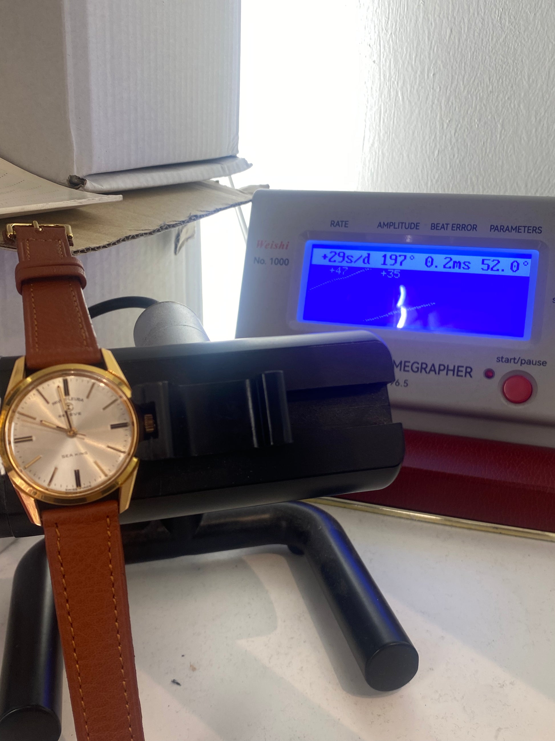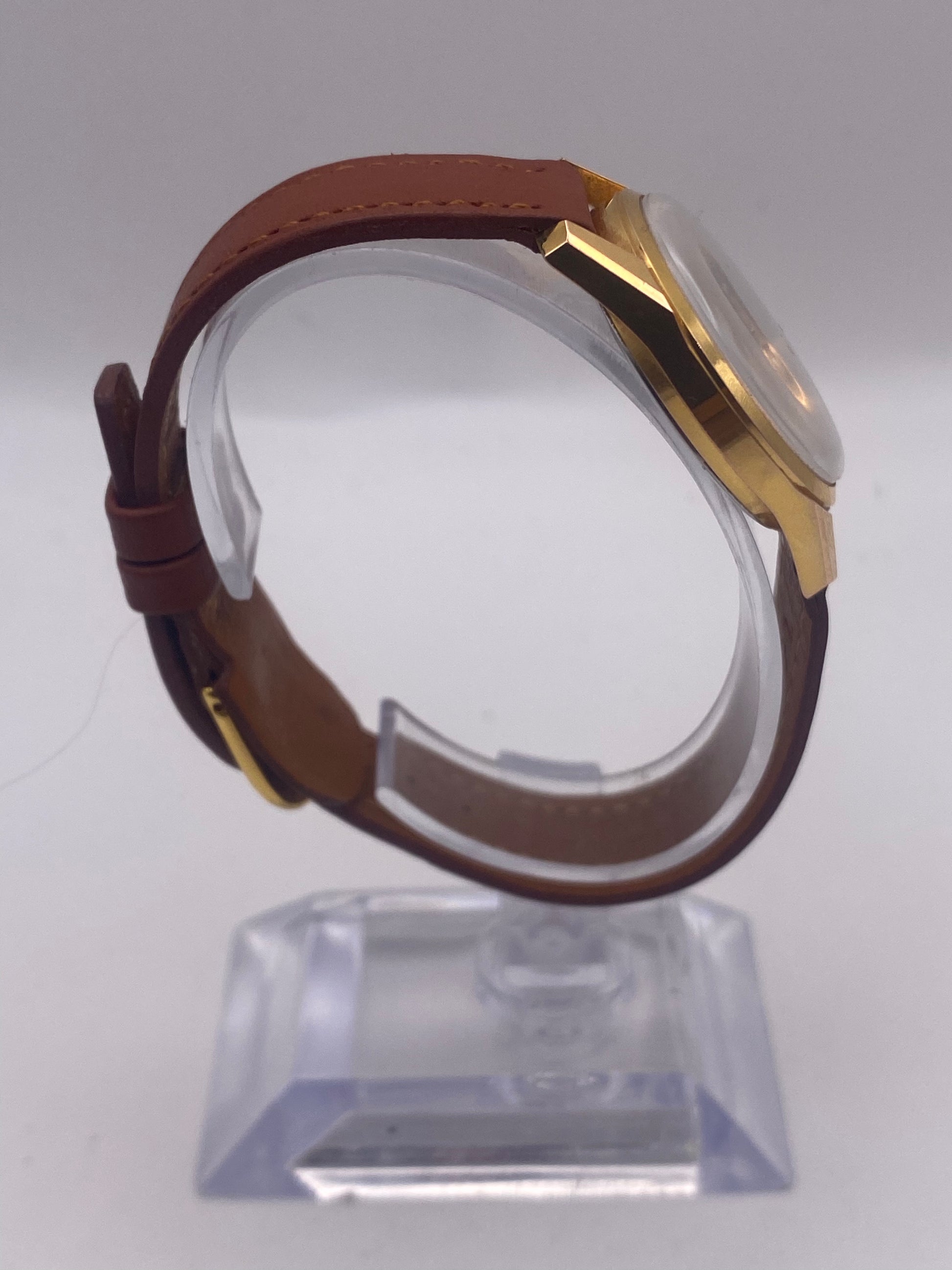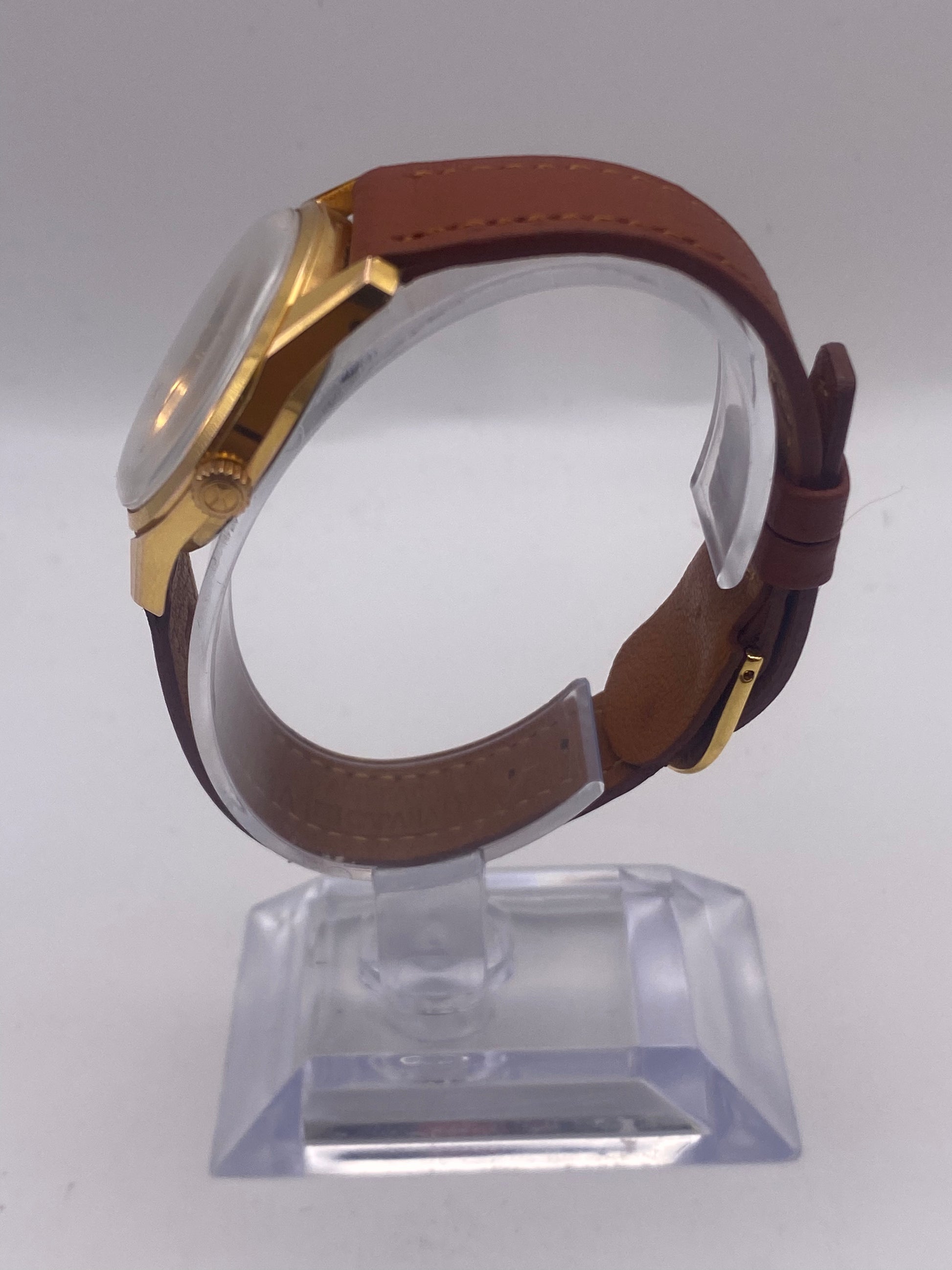 Now available is this stunning vintage Favre-Leuba manual wind mechanical gents dress watch. This watch has a striking silver dial with gold tone hour markers. It has a manual wind mechanical movement that has been time-tested and is running well. As you can see, the case and glass have some slight marks, but nothing that compromises the watch's wearability or structure. This watch is not water-resistant; keep it away from water. This watch is mechanical so will not be as accurate as a modern day quartz watch or smartphone.