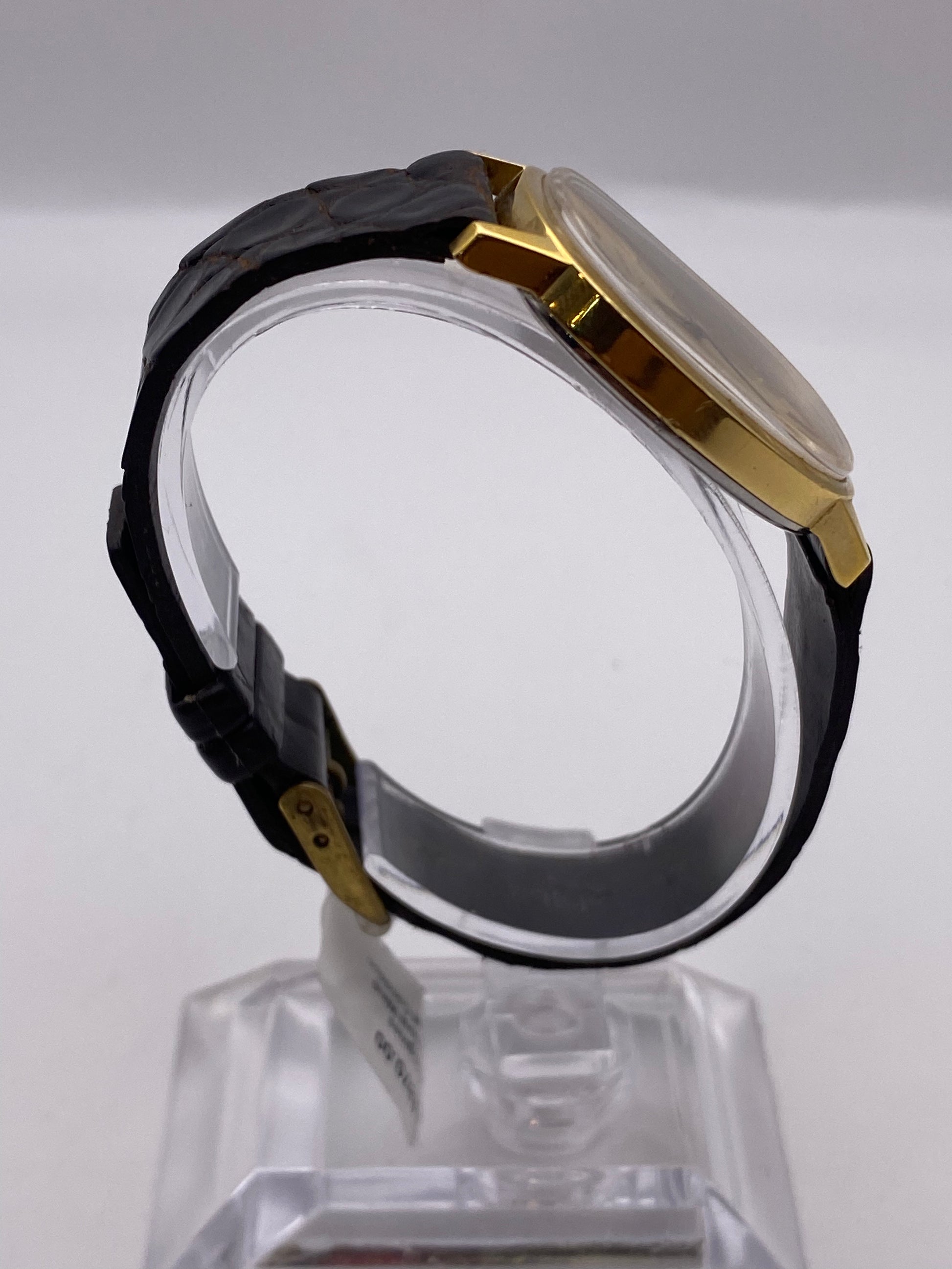 Now available is this stunning vintage Longines Elipse gold plated manual wind mechanical gents dress watch. This watch has a striking gold tone dial with amazing gold tone hands. It has a manual wind mechanical movement that has been time-tested and is running well. As you can see, the case and glass have some slight marks, but nothing that compromises the watch's wearability or structure. This watch is not water-resistant; keep it away from water. This watch is mechanical so will not be as accurate as a modern day quartz watch or smartphone.