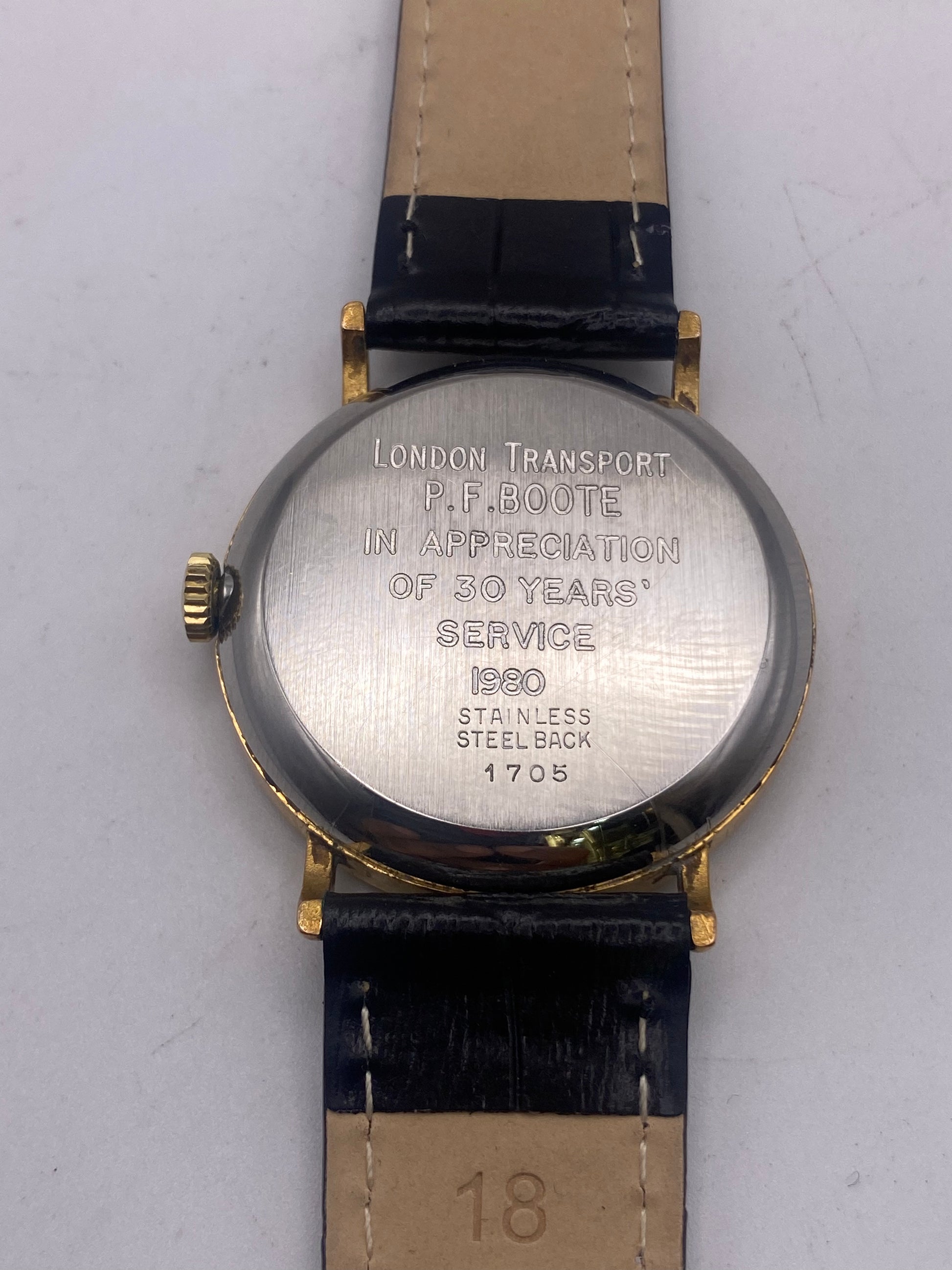Now available is this stunning vintage Mappin & Webb gold plated dress watch. This watch features a beautiful cream tone dial with gold tone hands and indexes. It has a quartz movement that has been time-tested and is running exceptionally well. As you can see, the case and glass have some slight marks, but nothing that compromises the watch's wearability or structure. This watch is not sold as water-resistant; keep it away from water.