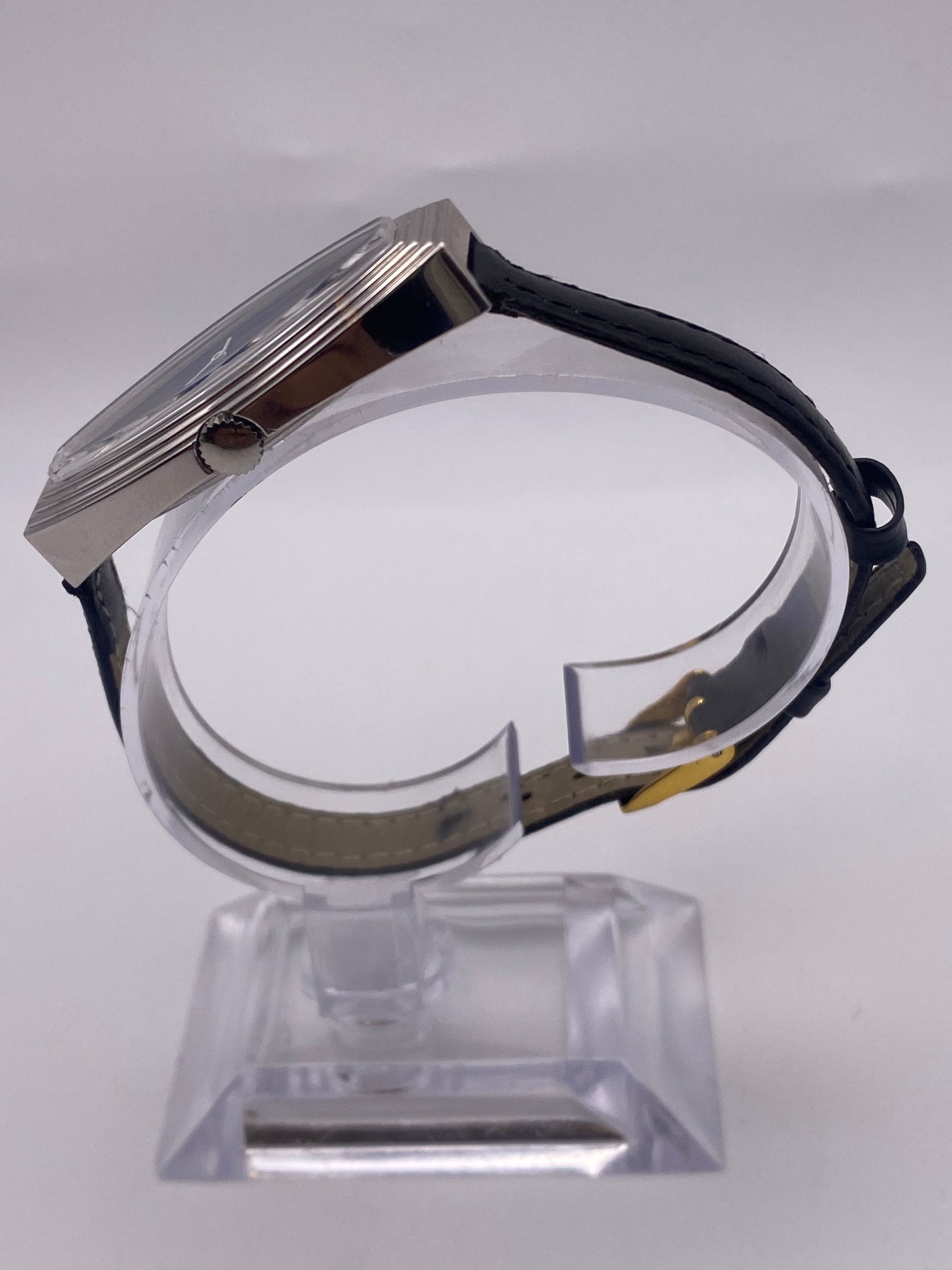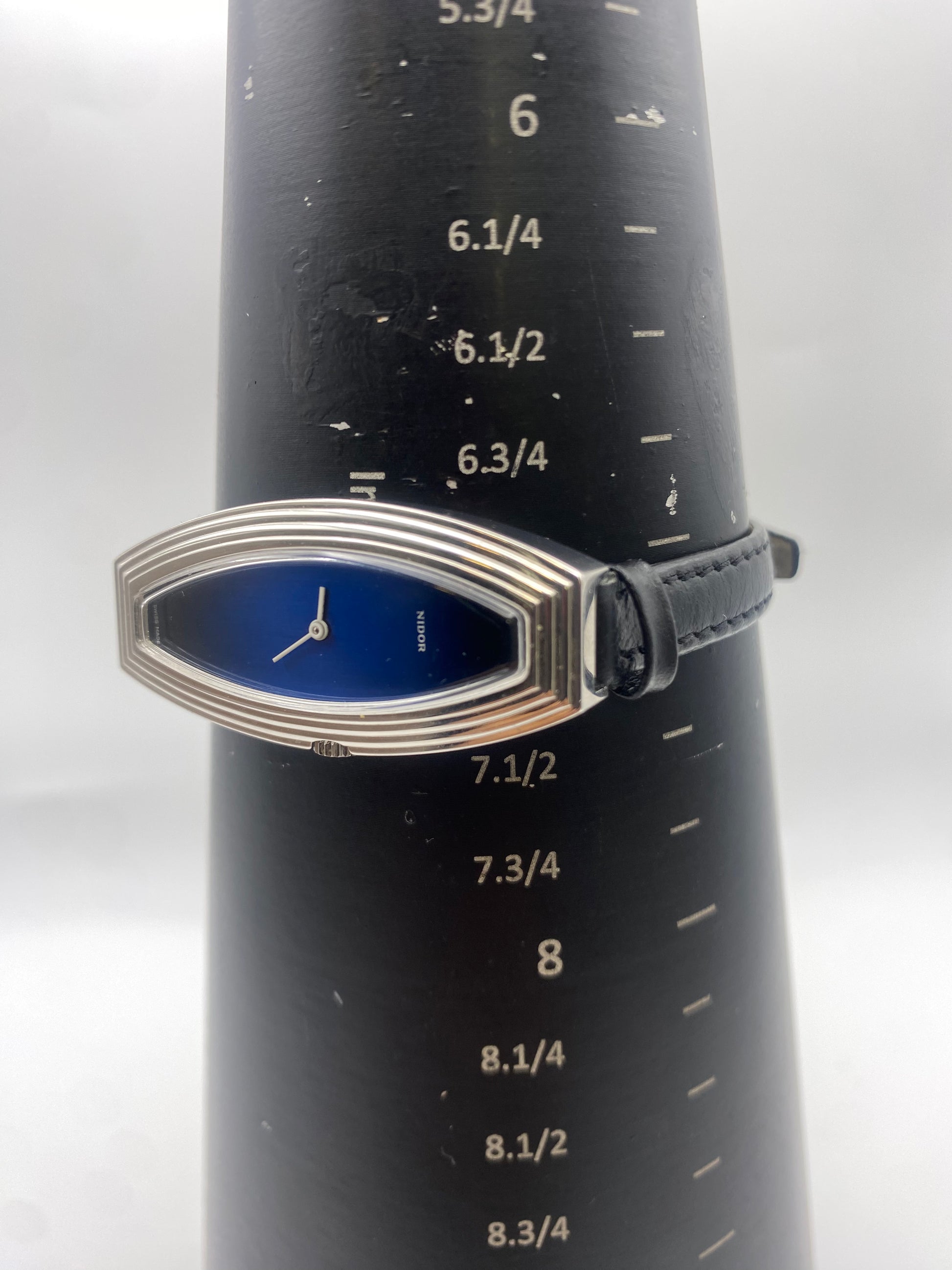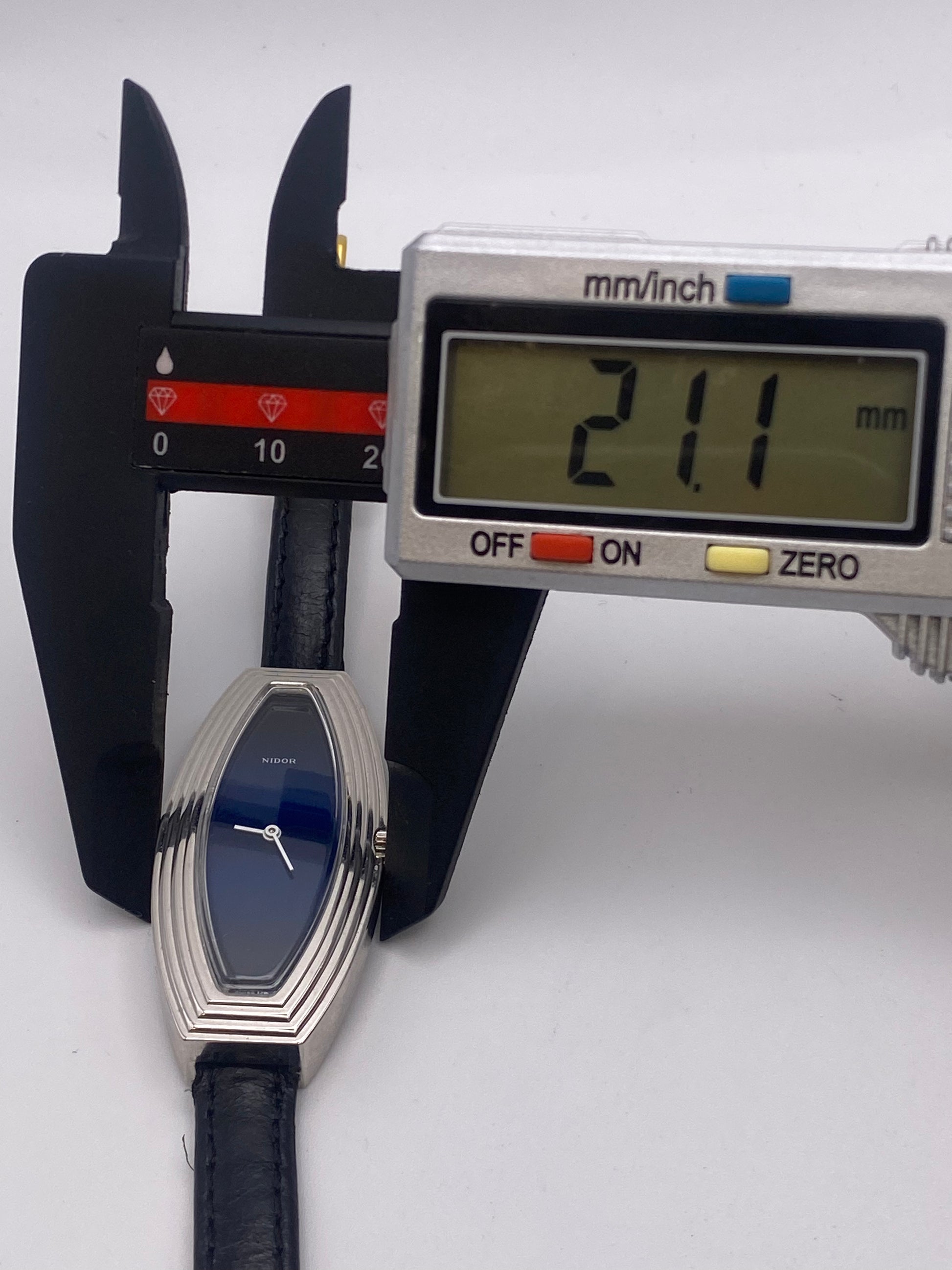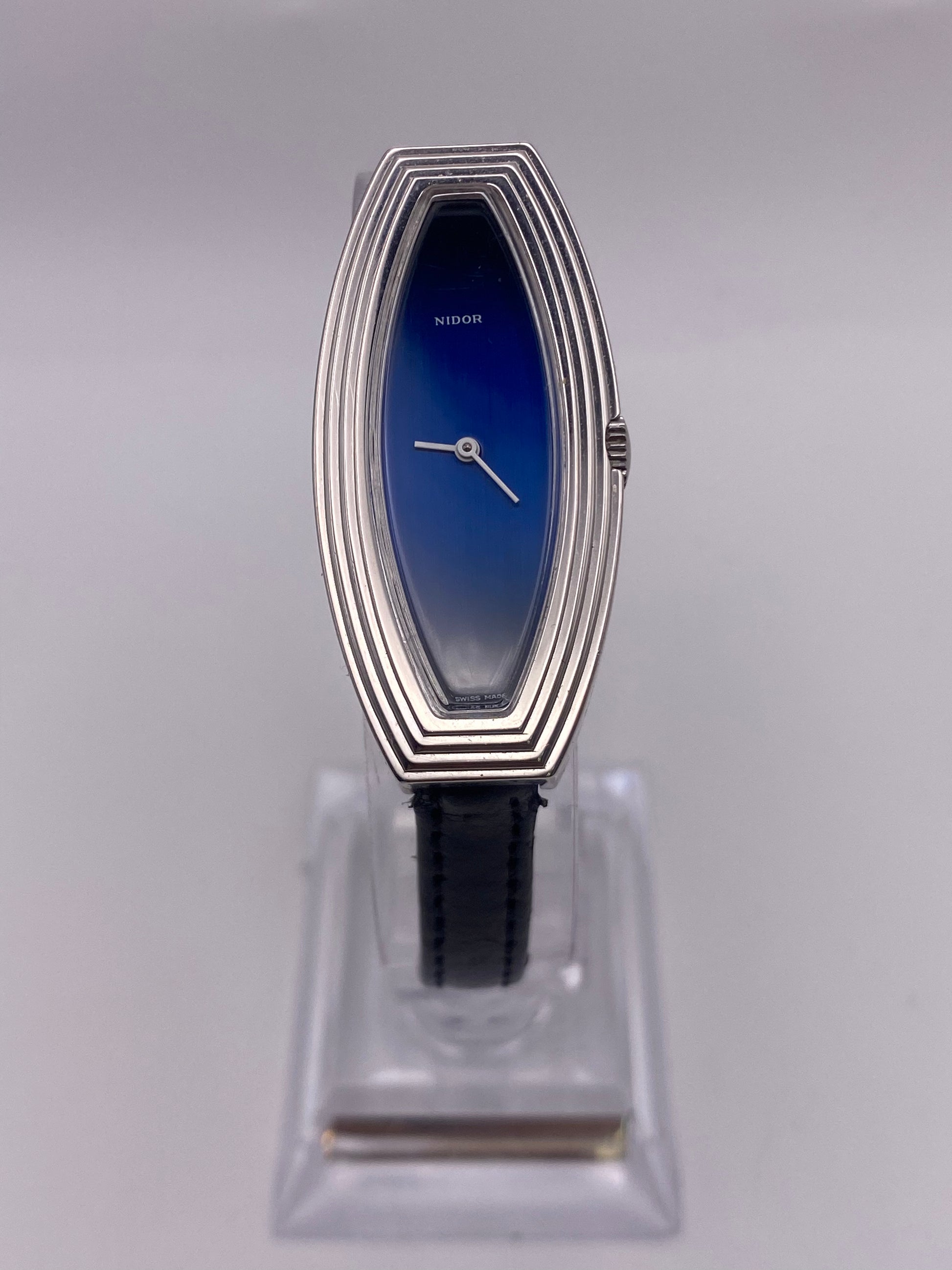 Now available is this stunning vintage Nidor Manual Wind Mechanical dress watch. This watch has a striking blue gradient dial with white hands . It has a manual wind mechanical movement that has been time-tested and is running well. As you can see, the case and glass have some slight marks, but nothing that compromises the watch's wearability or structure. This watch is not water-resistant; keep it away from water. This watch is mechanical so will not be as accurate as a modern day quartz watch or smartphone.