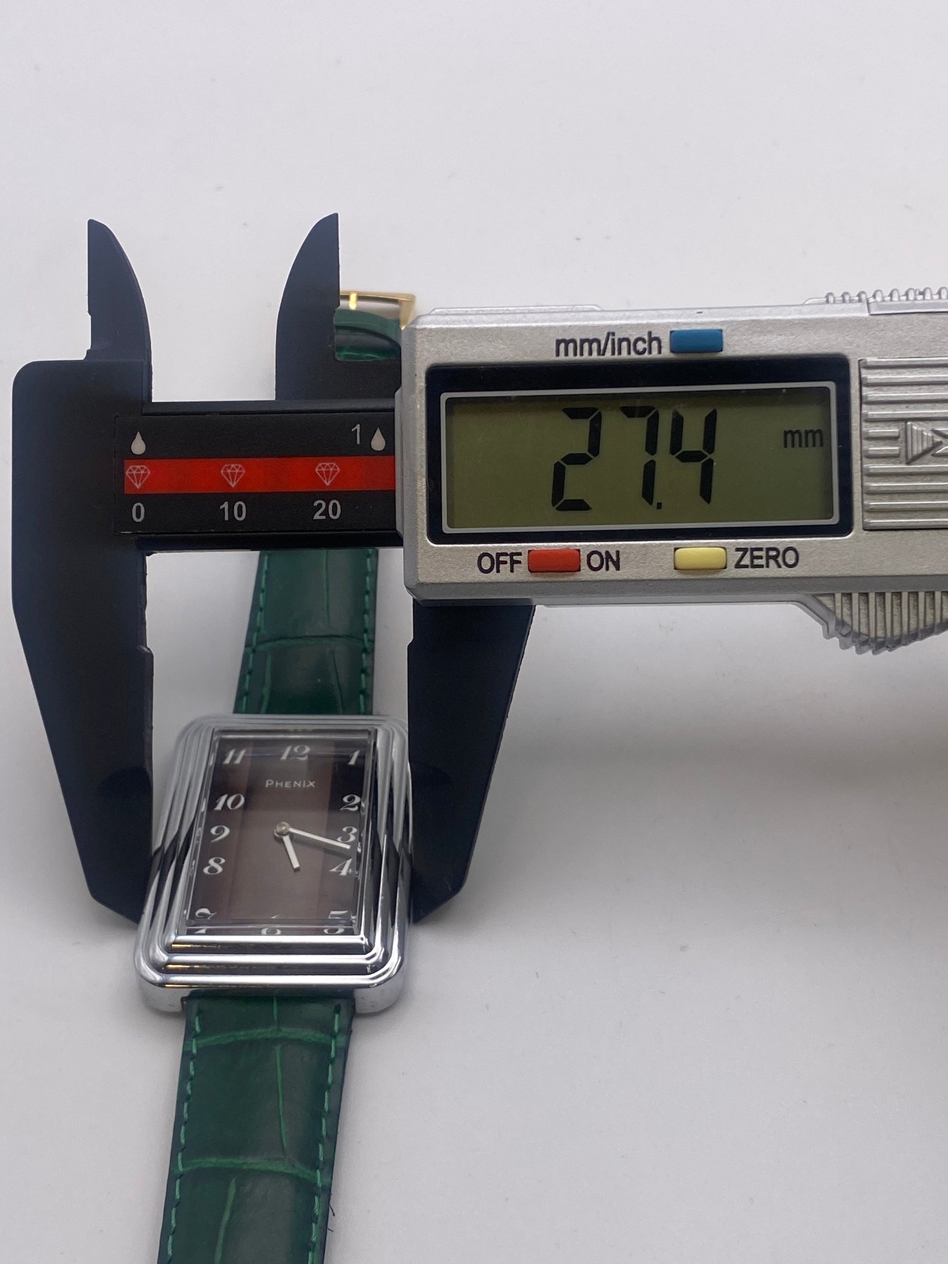 Now available is this stunning vintage Phenix Manual Wind Mechanical dress watch. This watch has a striking brown dial with white hands . It has a manual wind mechanical movement that has been time-tested and is running well. As you can see, the case and glass have some slight marks, but nothing that compromises the watch's wearability or structure. This watch is not water-resistant; keep it away from water. This watch is mechanical so will not be as accurate as a modern day quartz watch or smartphone.
