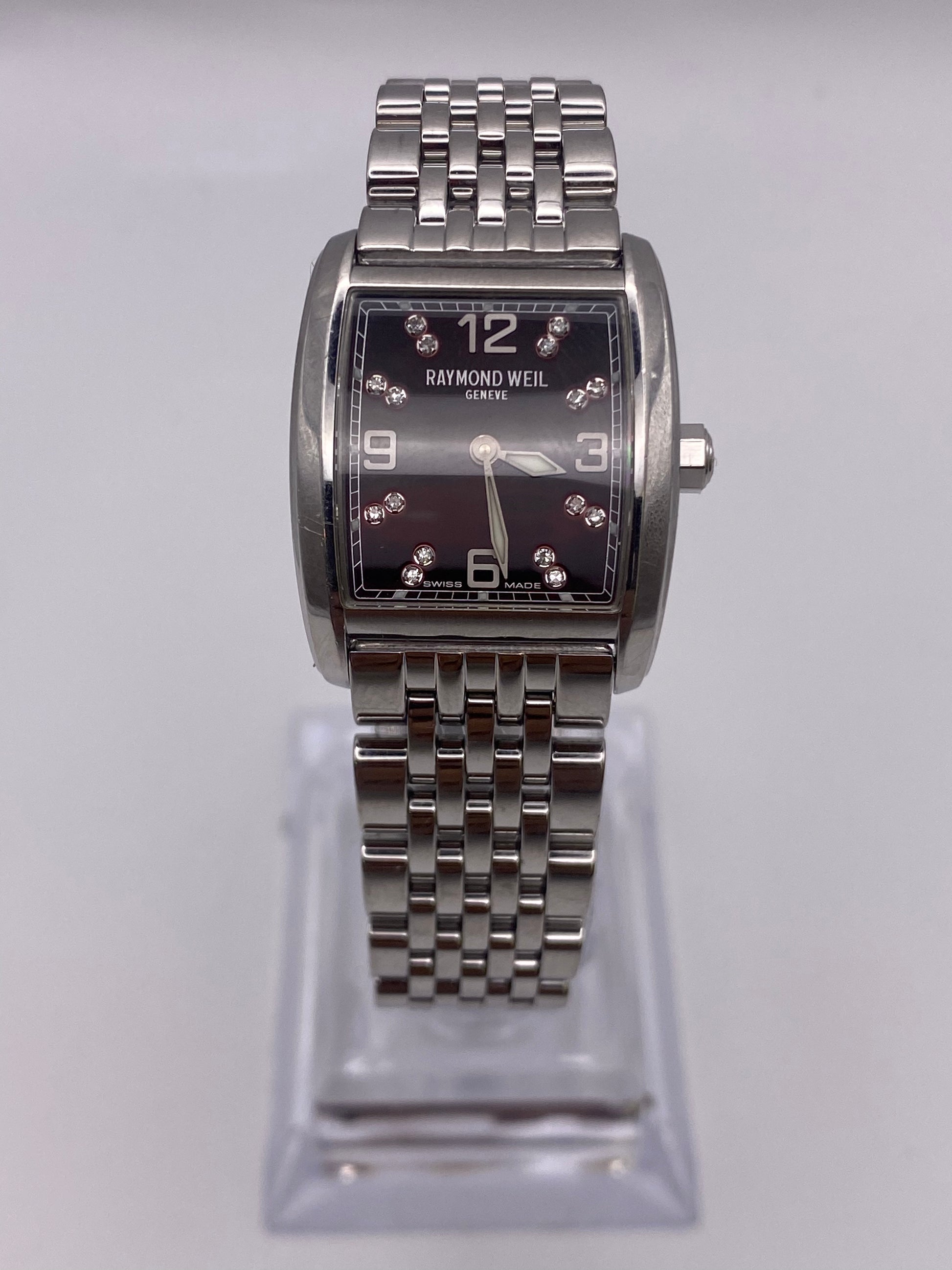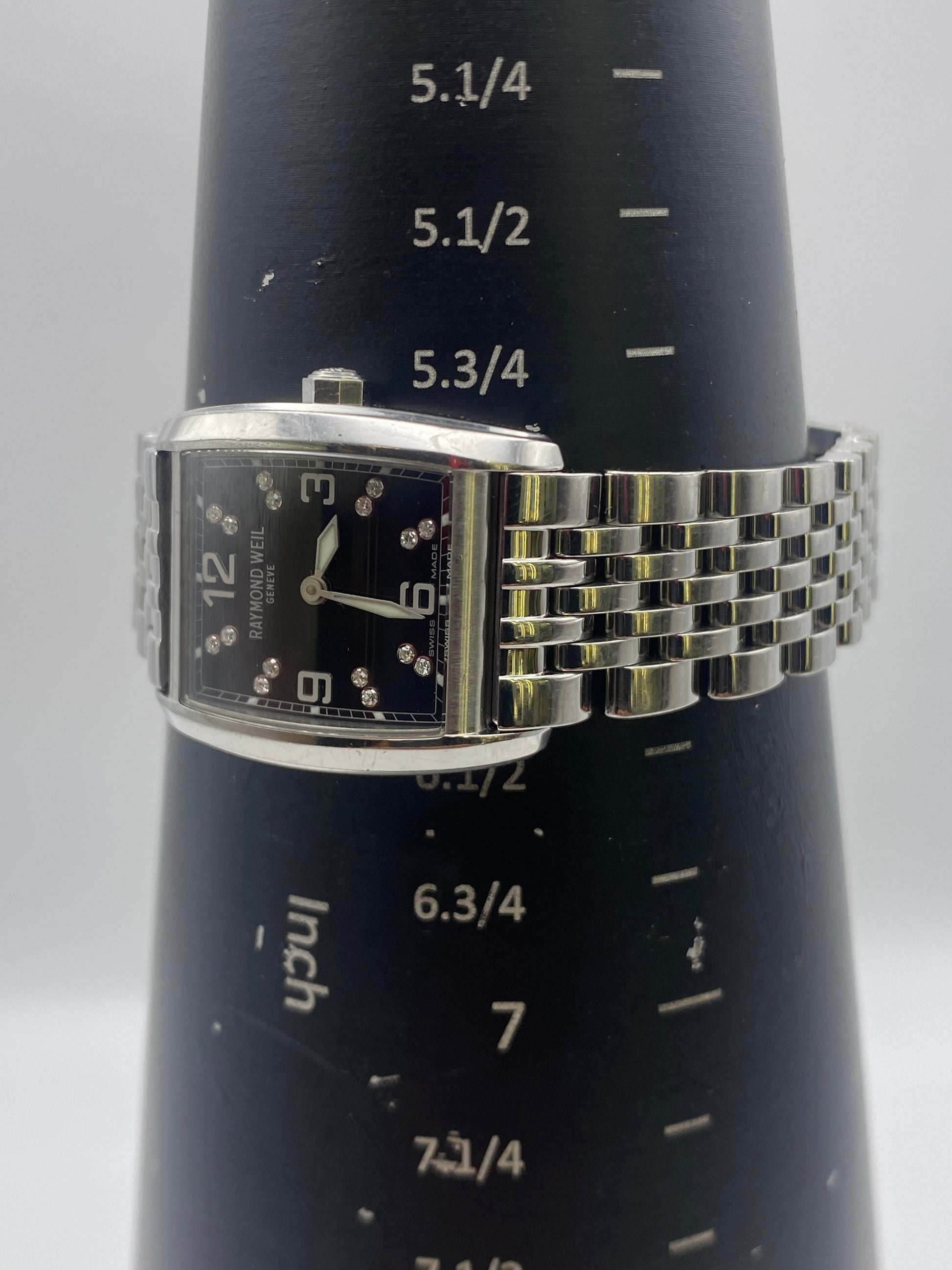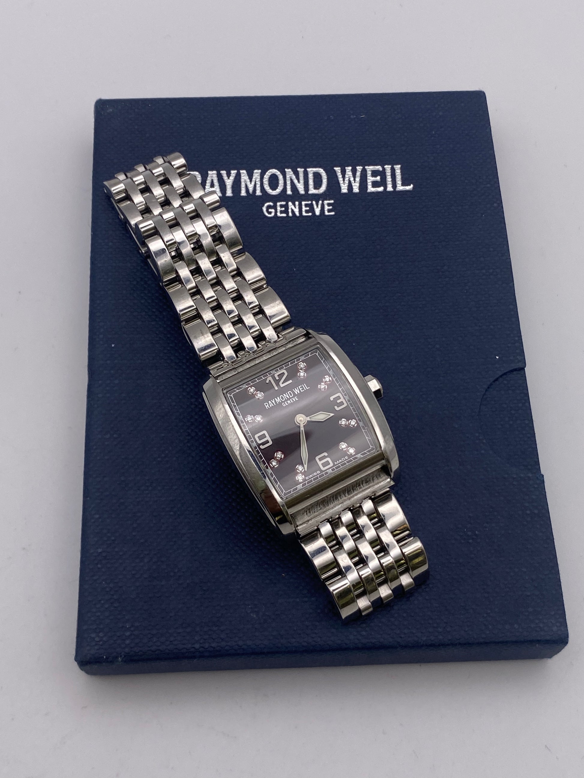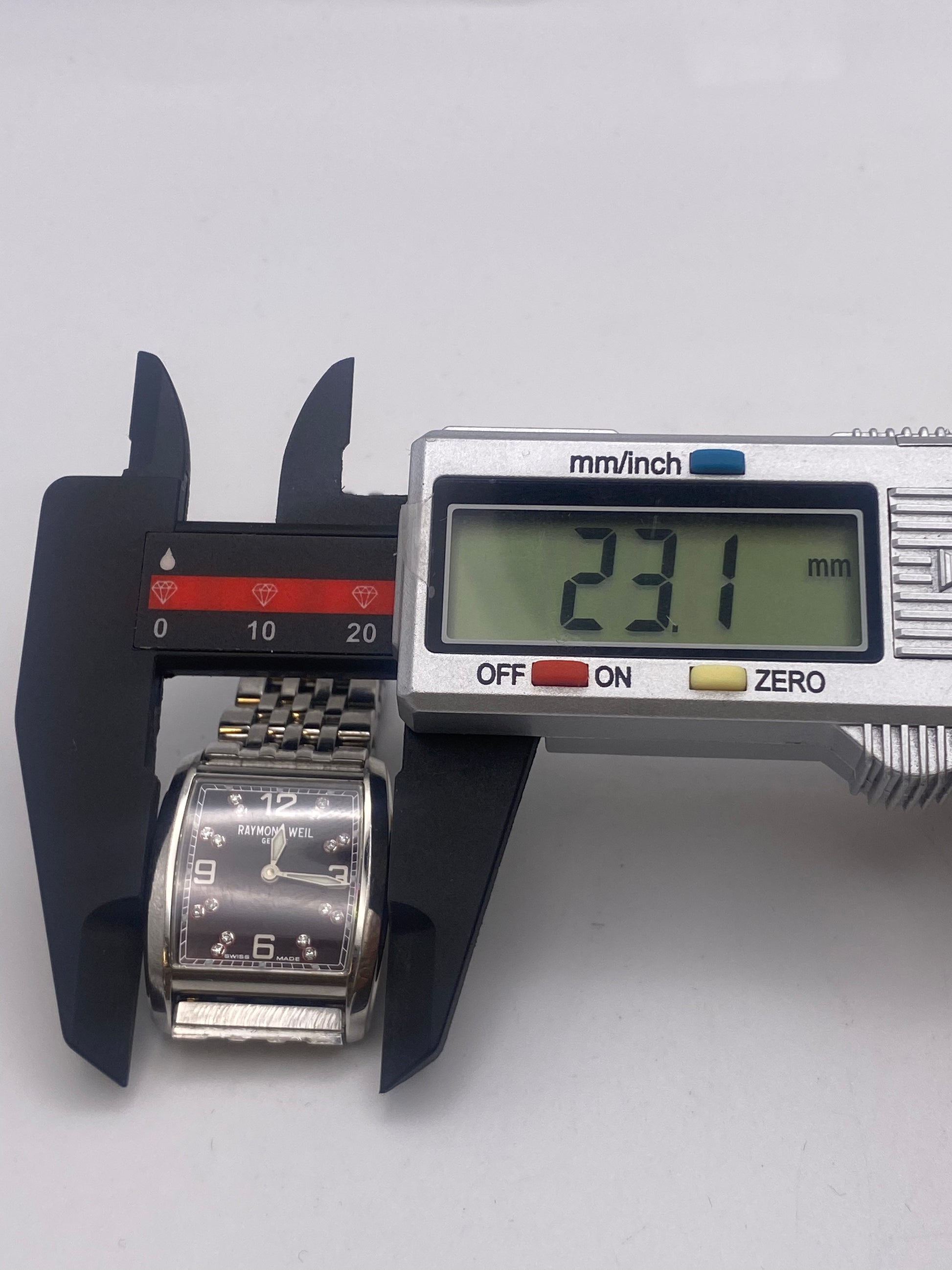 Now available is this stunning Raymond Weil quartz dress watch. This watch features a beautiful deep red dial with silver tone indexes and hands. It has a quartz movement that has been time-tested and is running exceptionally well. As you can see, the case and glass have some slight marks, but nothing that compromises the watch's wearability or structure. This watch is not sold as water-resistant; keep it away from water.