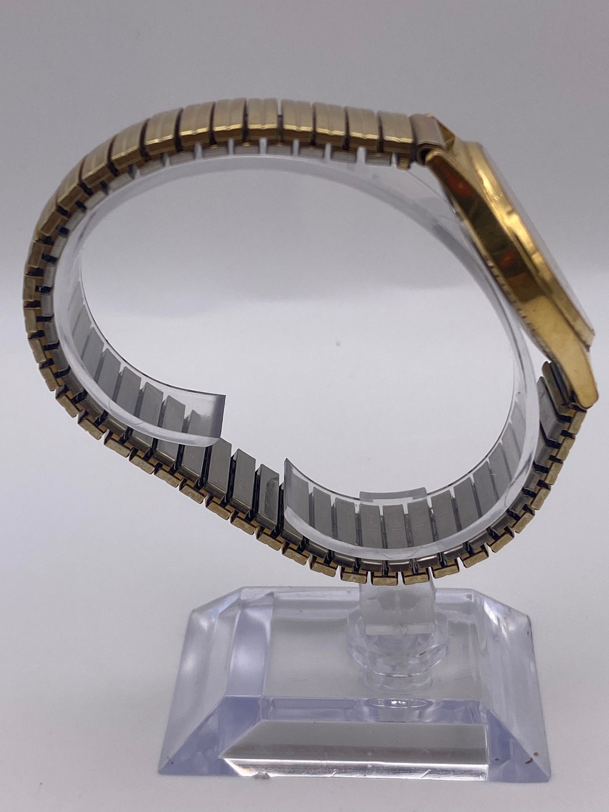 Now available is this stunning Rotary gold plated quartz dress watch. This watch features a beautiful gold tone dial with gold tone indexes and hands. It has a quartz movement that has been time-tested and is running exceptionally well. As you can see, the case and glass have some slight marks, but nothing that compromises the watch's wearability or structure. This watch is not sold as water-resistant; keep it away from water.