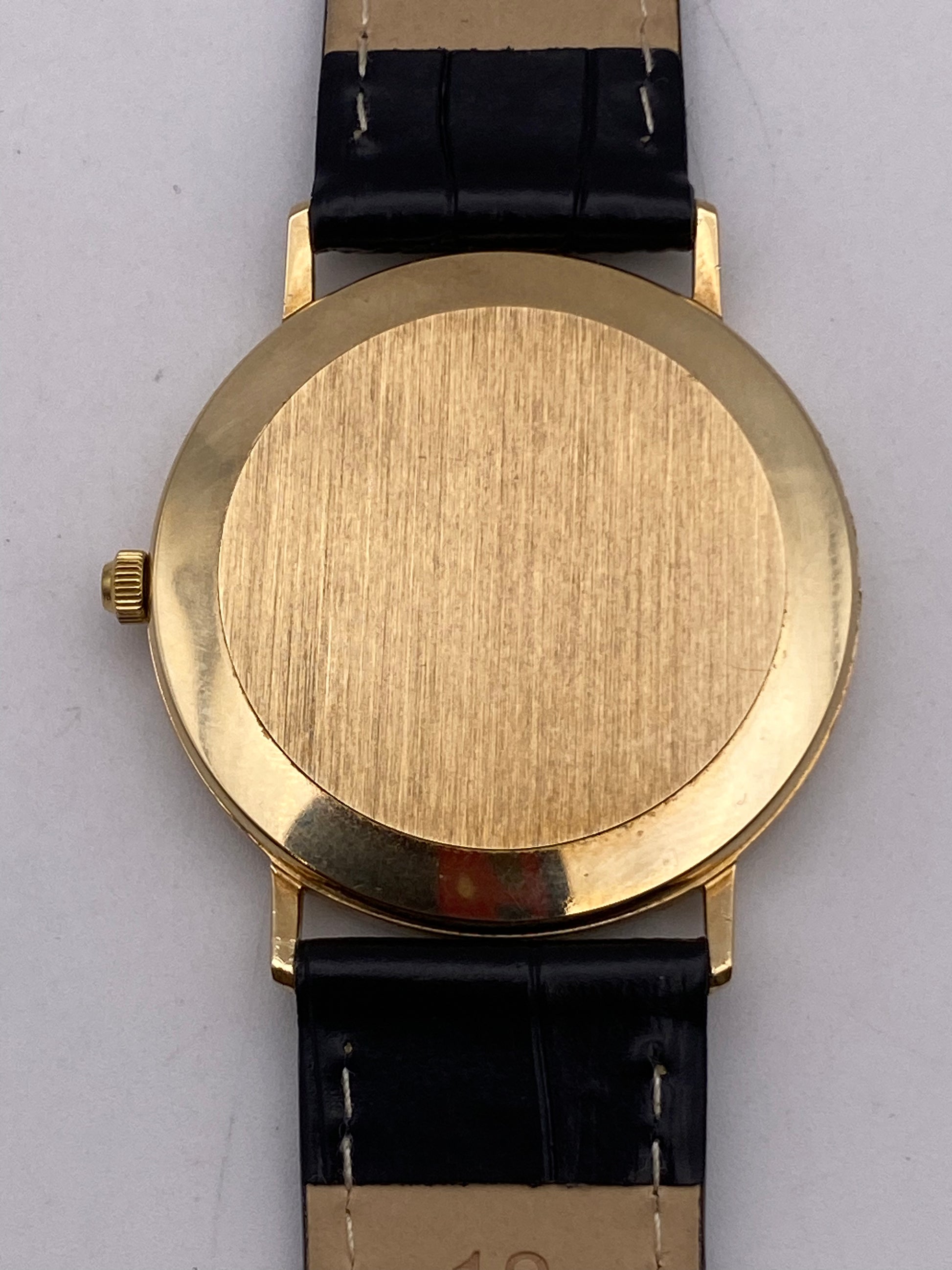 Bracelet: Leather Strap Case material: Stainless Steel 9ct Gold