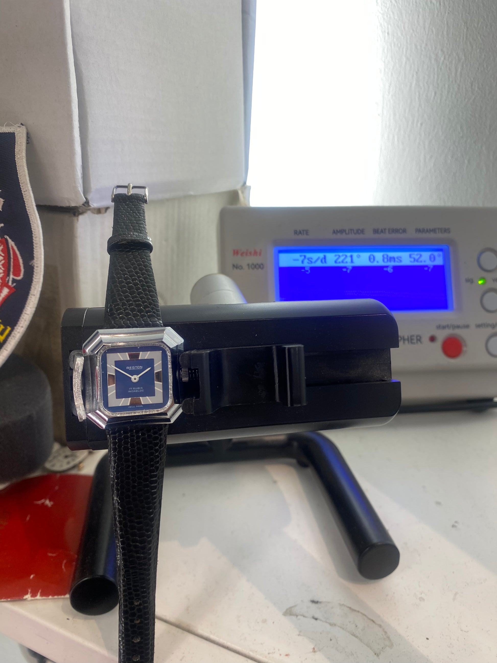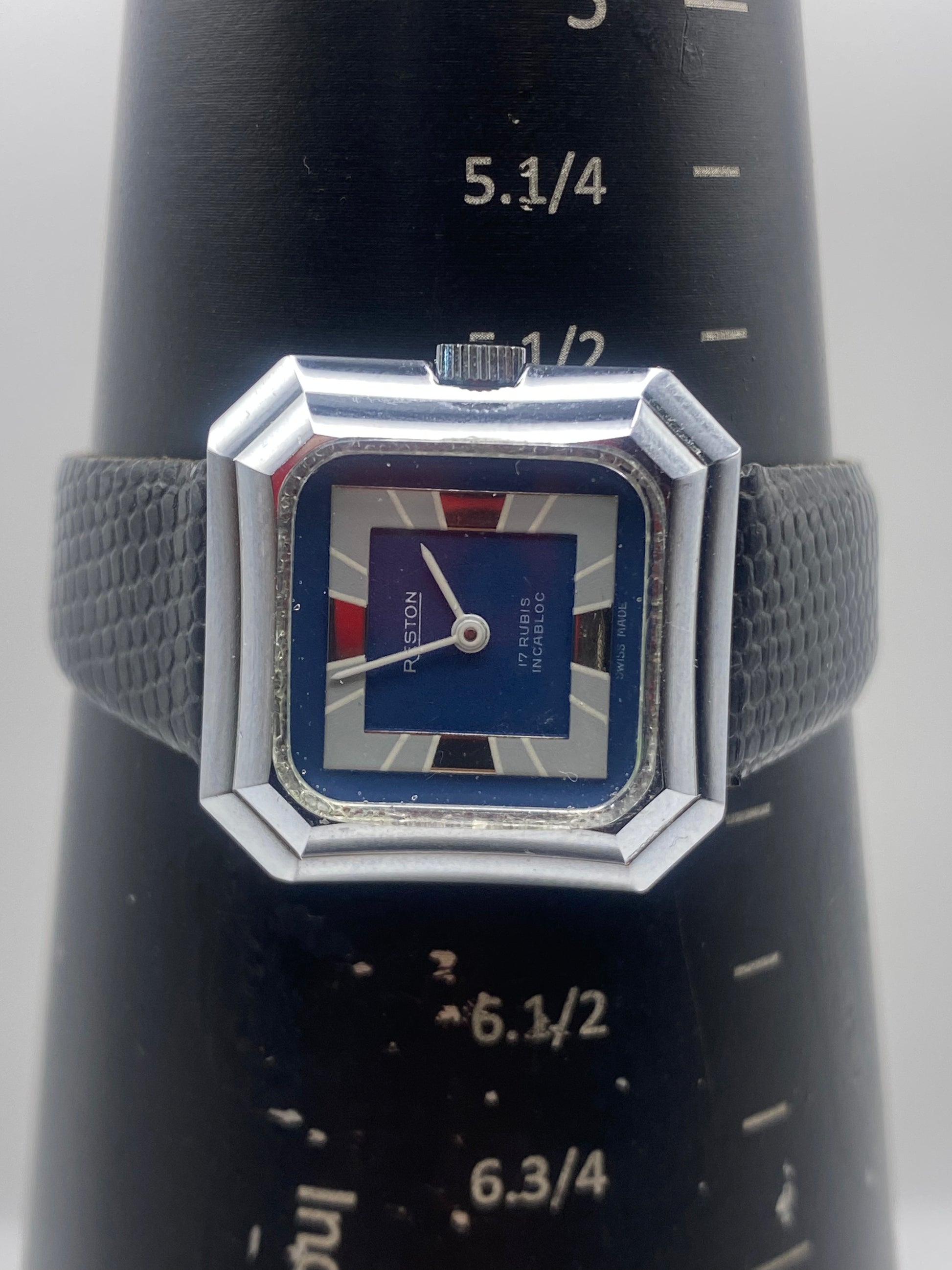 Now available is this stunning vintage Reston Manual Wind Mechanical dress watch. This watch has a striking blue dial with white hands . It has a manual wind mechanical movement that has been time-tested and is running well. As you can see, the case and glass have some slight marks, but nothing that compromises the watch's wearability or structure. This watch is not water-resistant; keep it away from water. This watch is mechanical so will not be as accurate as a modern day quartz watch or smartphone.